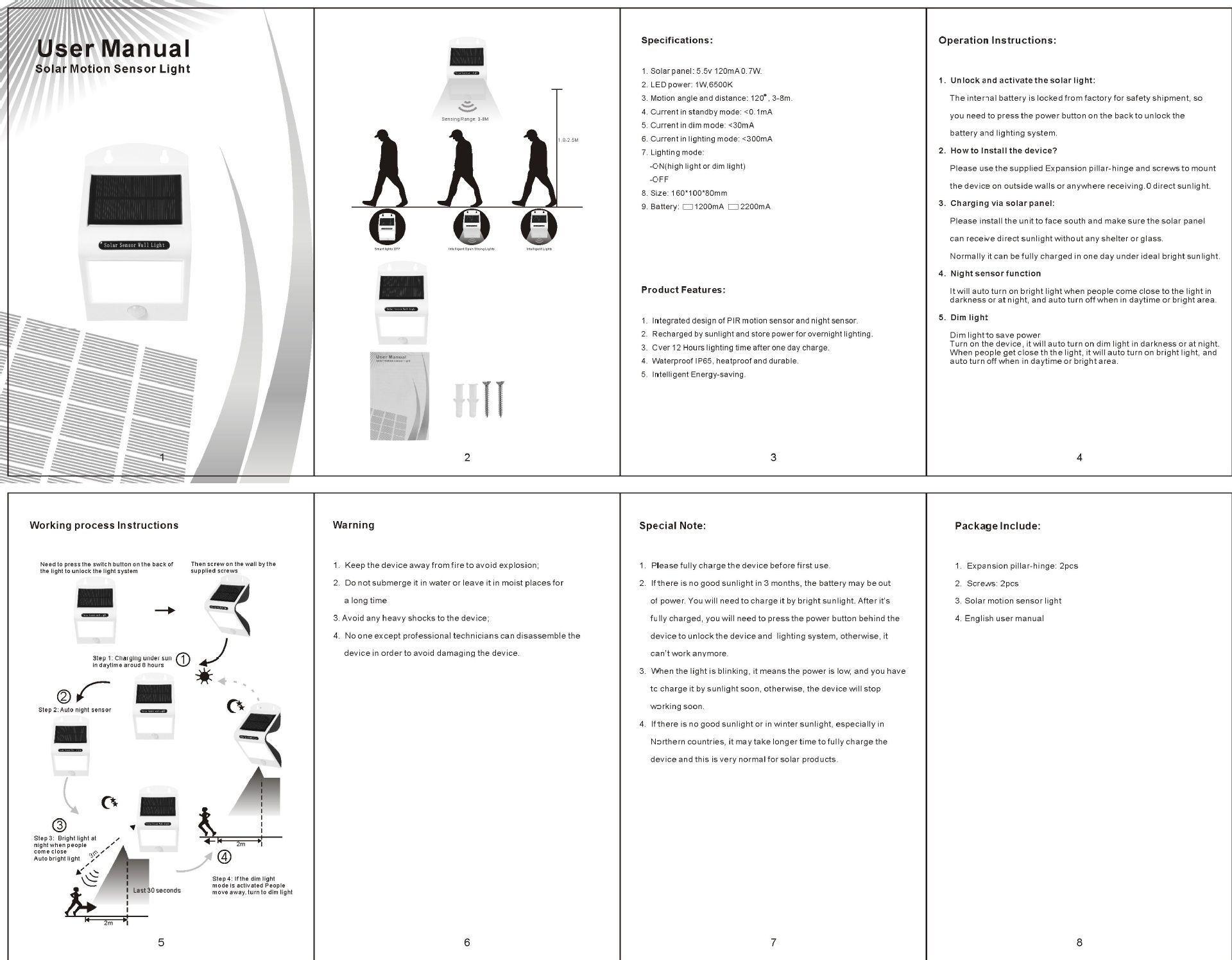 打开设备,它会在黑暗或夜晚自动打开昏暗的灯光。当人们靠近灯时,它会自动打开明亮的灯,在白天或明亮的区域自动关闭。